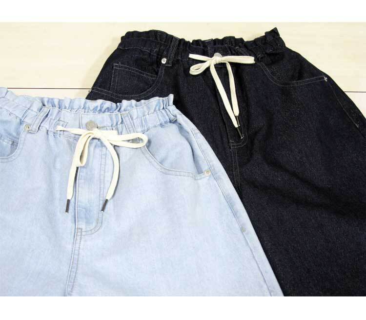 ウエストは総ゴムにヒモが通ったフリーサイズです